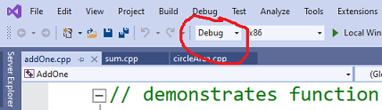 The values of the local variables are displayed by the MSVS