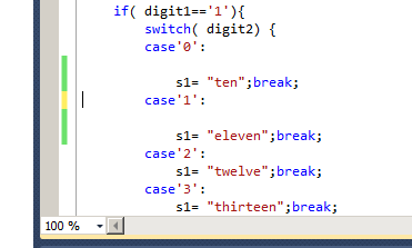 line indicates that this line was saved. The yellow bar indicates that